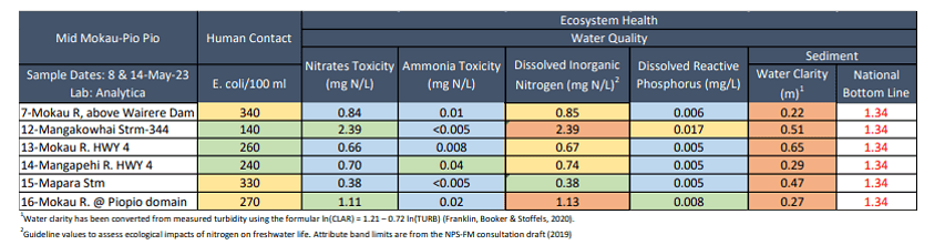 The results in the table below have been graded according to the National Policy Statement for Freshwater Management (NPS-FM, 2020).